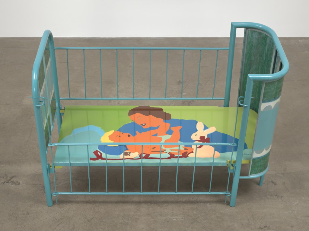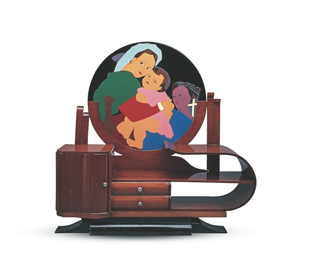 In the 1970s, she began her work on various pieces of store-bought furniture that would generally be found in middle-class households earlier in the century. Typically she would take her images from well known Italian Renaissance and history paintings, or pictures from the present day news media, transferring these images onto cheap nightstands, chairs, coffee tables and beds painted by an amateur painter.