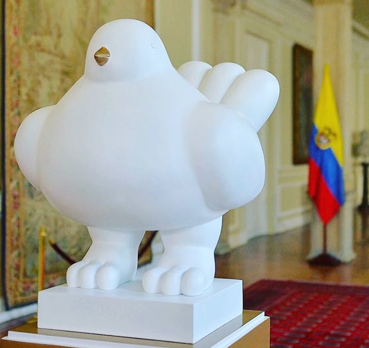 In response to the Colombian peace process, Botero sculptured and donated La paloma de la paz (2016) to the Government of Colombia to commemorate the signing and ratification of the agreement: