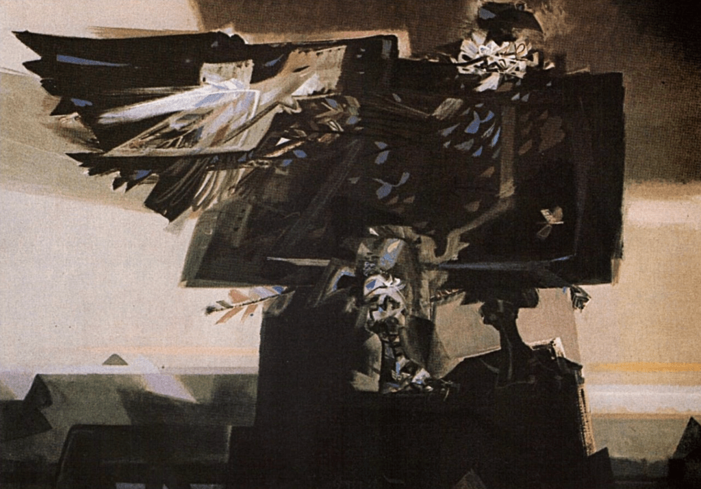 Obregón took influence from European culture, while retaining an Andean imagery and stylistic creation, using guitars, bulls, and the Andean condor in his pieces. In 1959, Obregón painted his first condor, which has since appeared in almost fifty canvases during his career. While alluding to the nation, as the condor figures in Colombia’s coat of arms, in Obregón’s work, the condor also refers to the exaltation of the might of American nature, the ideal of liberty, and the power of vitality.