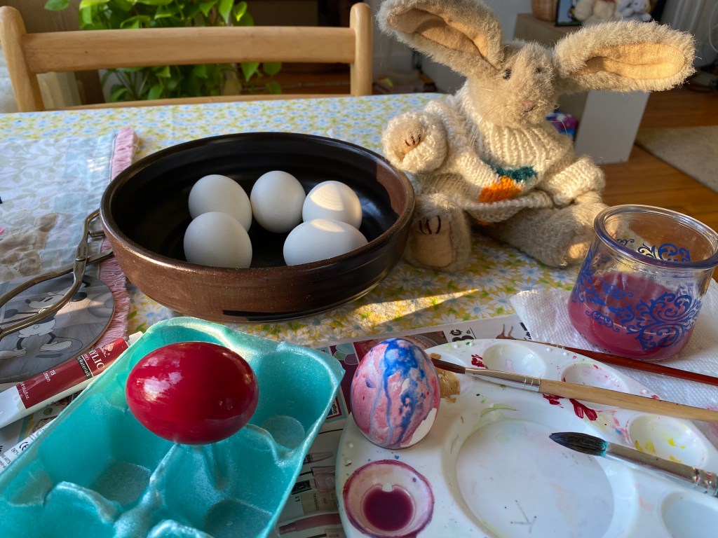 Today I made a straw Easter egg. Well I tried to. It is not straw because I came up with the idea just as I sat down to decorate my eggs and suddenly the thought came… how do Slovaks decorate theirs?