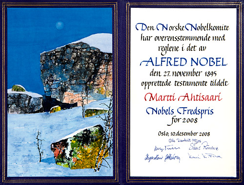 2008 Former president of Finland Martti Ahtisaari wins the Nobel Peace Prize.