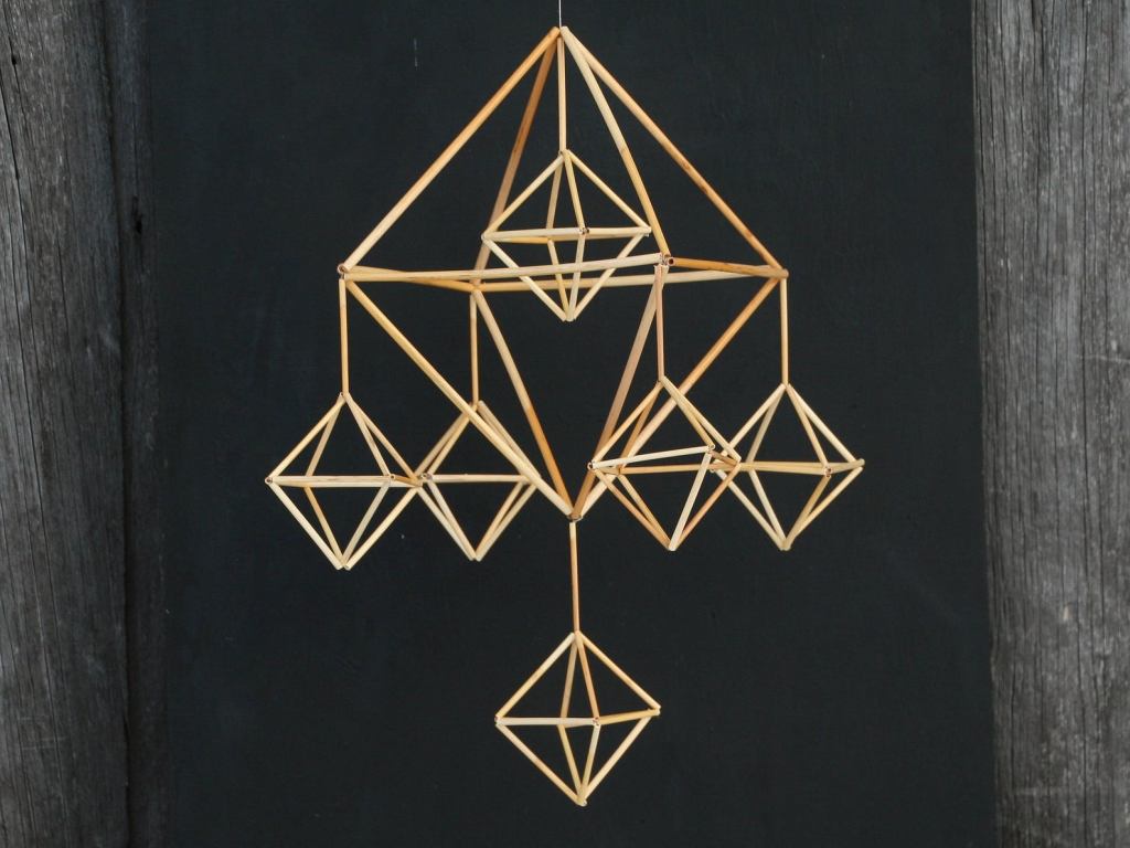 Design wise a lot of the Himmelis seem to be based in the octahedron (made from 8 equilateral triangles, or diamond shaped polyhedra. They have become a modern minimalist decoration object sometimes used as a air plant holder. These are made of brass.
