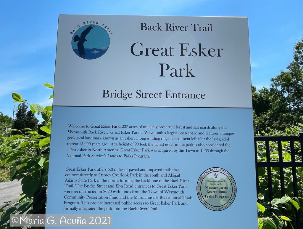 Now, let’s get back to our esker, first I’ll share how to get there. So if you are local , you can drive there or take the train and get to Quincy Center on the red line. From there you pick up bus #222 that after 21 stops will drop you right in a shopping mall that is next to the park. Walking through the parking lot to get to the entrance was my least favorite part in the sun coming back. I thought I was going to melt!