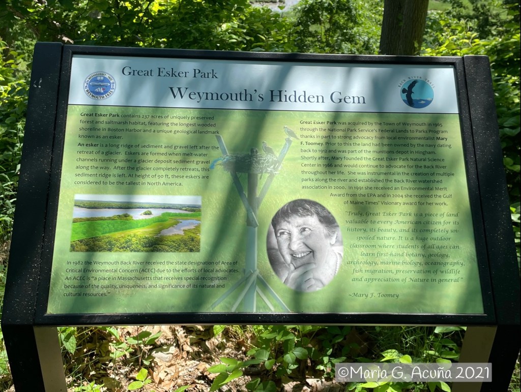 The woman in the photo is Mary F. Toomey, an environmentalist key to the foundation and preservation of this park. So glad they placed this information in the highest point… you can read it below: