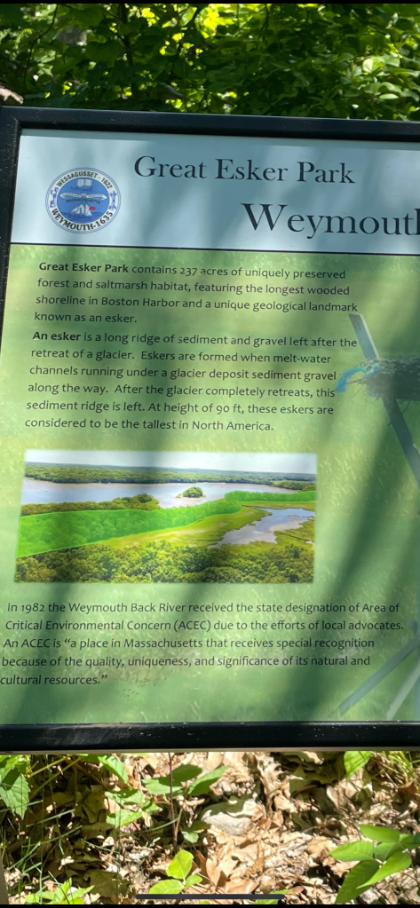 Today I will share my first home connection! While researching what an esker was back in my first geography post about Finland, I read that relatively close to me was the highest esker in North America! Imagine that!!! It is located in Weymouth, Massachusetts! Not bad Massachusetts considering that Michigan has over 1000 eskers! And Canada… who knows who many they must have!
