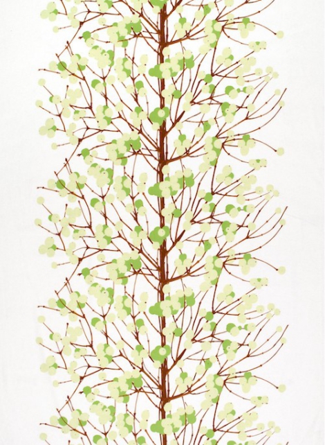 In 1991, Kirsti Paakkanen who was an advertising executive, took ownership of Marimekko. She helped to renew the image of Marimekko at this time by hiring new fashion designers. Among them was Erja Hirvi who’s design “Lumimarja,” a bush branch with berries, became a instant hit: