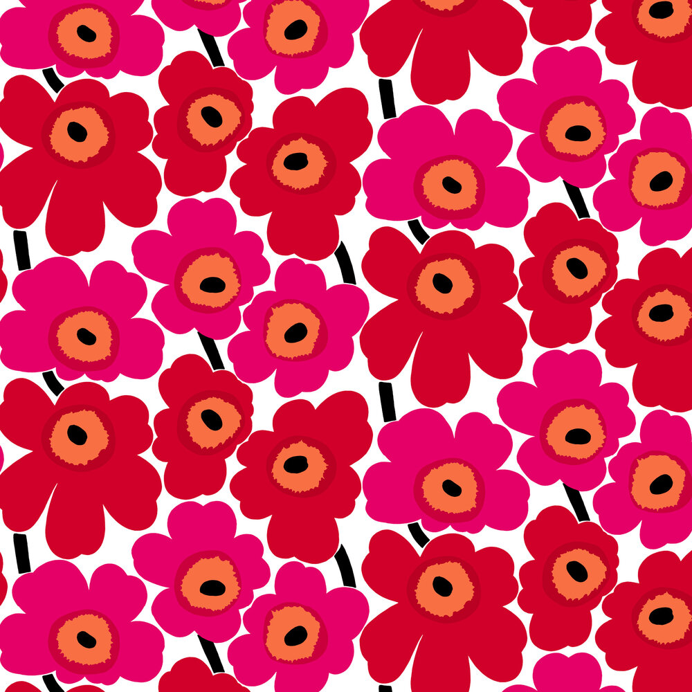 Maija created so many great flower designs that Marimekko accepted 8 into its portfolio of printing designs. Her Unikko is so único! that it became the symbol of the company. This is it: