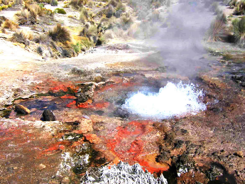 This is known to Bolivians as “La Coordillera Occidental.” It is of volcanic origin and has many volcanos dormant volcanoes and solfataras, volcanic vents emitting sulfurous gases. It also has many high peaks including “Nevado Sajama,” Bolivia’s highest point at 21,463 ft (6,542m) with permanent snow cover: