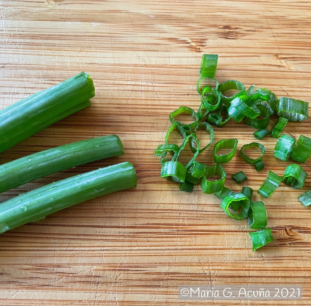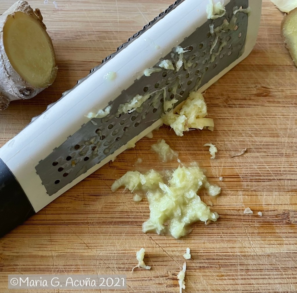 2. While this was cooking I grated the ginger and cut a bit of the green part of two green onions.