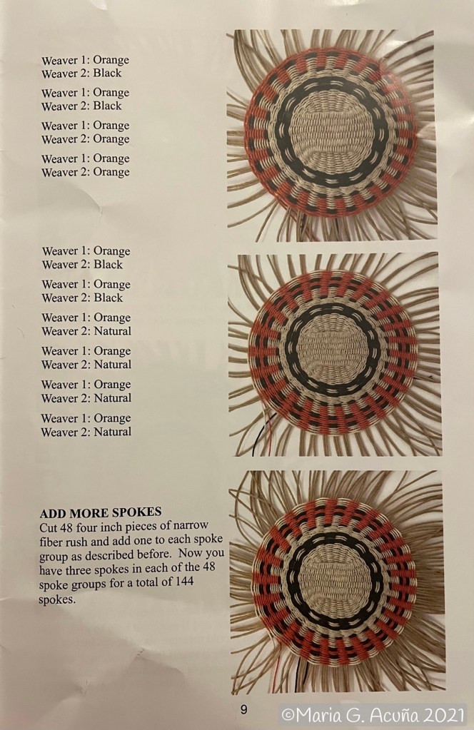 Then after your weaving gets bigger, it is necessary to increase the amount of spokes. Otherwise your design would be too flimsy. This is a tedious task (my least favorite) and so time consuming! I had to add 48 of them! One sticks them in with glue.