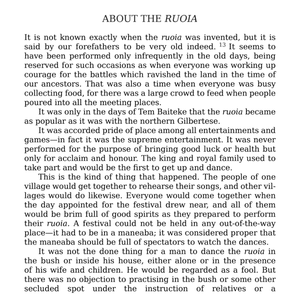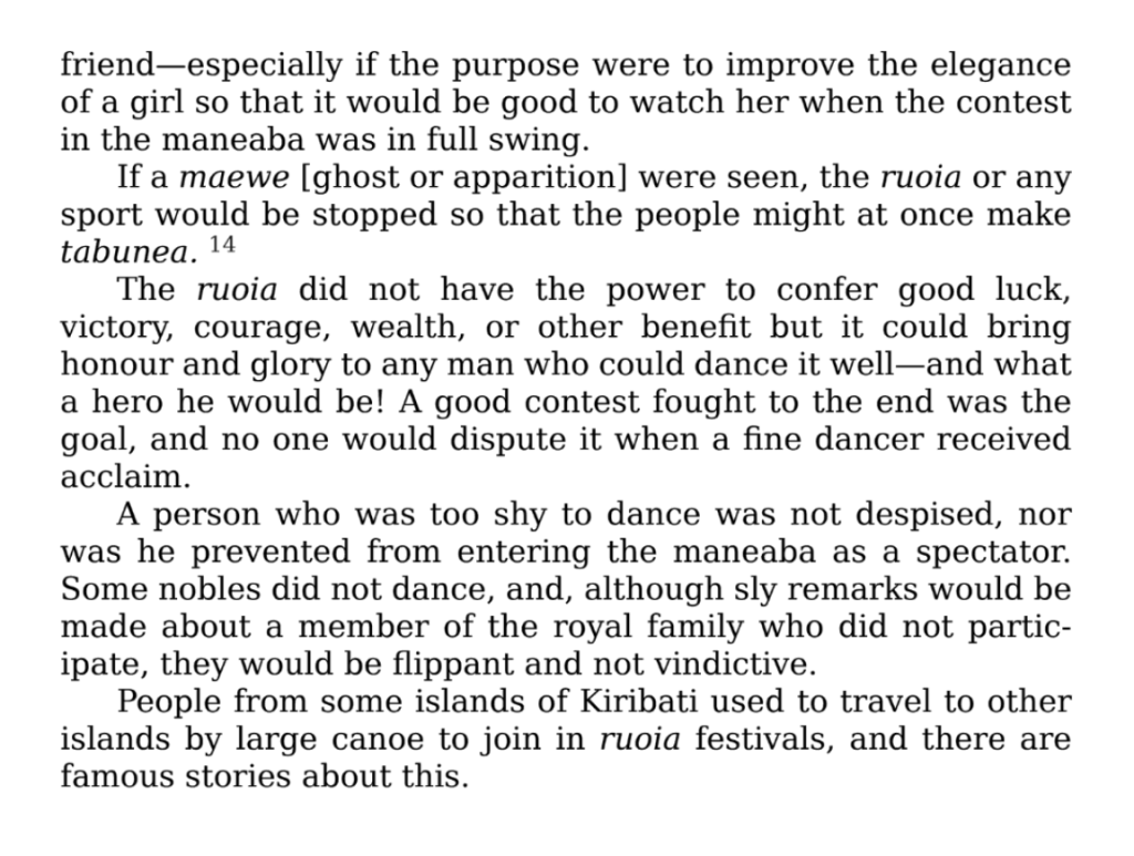 I found this excerpt online from a book called “Tungaru Traditions: Writings on the Atoll Culture of the Gilbert Islands” (3)