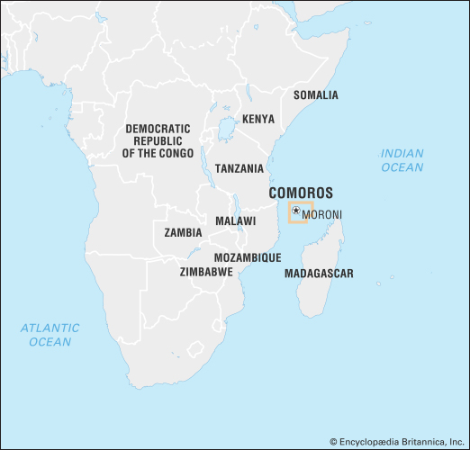 The islanders reflect a diversity of origins. Malay immigrants and Arab and Persian traders have mixed with peoples from Madagascar and with various African peoples. Most of the islands’ inhabitants speak island-specific varieties of Comorian (Shikomoro), a Bantu language related to Swahili and written in Arabic script. Comorian, Arabic, and French are the official languages. French is the language of administration. Most Comorians are Sunni Muslims, and Islam is the state religion. (2)