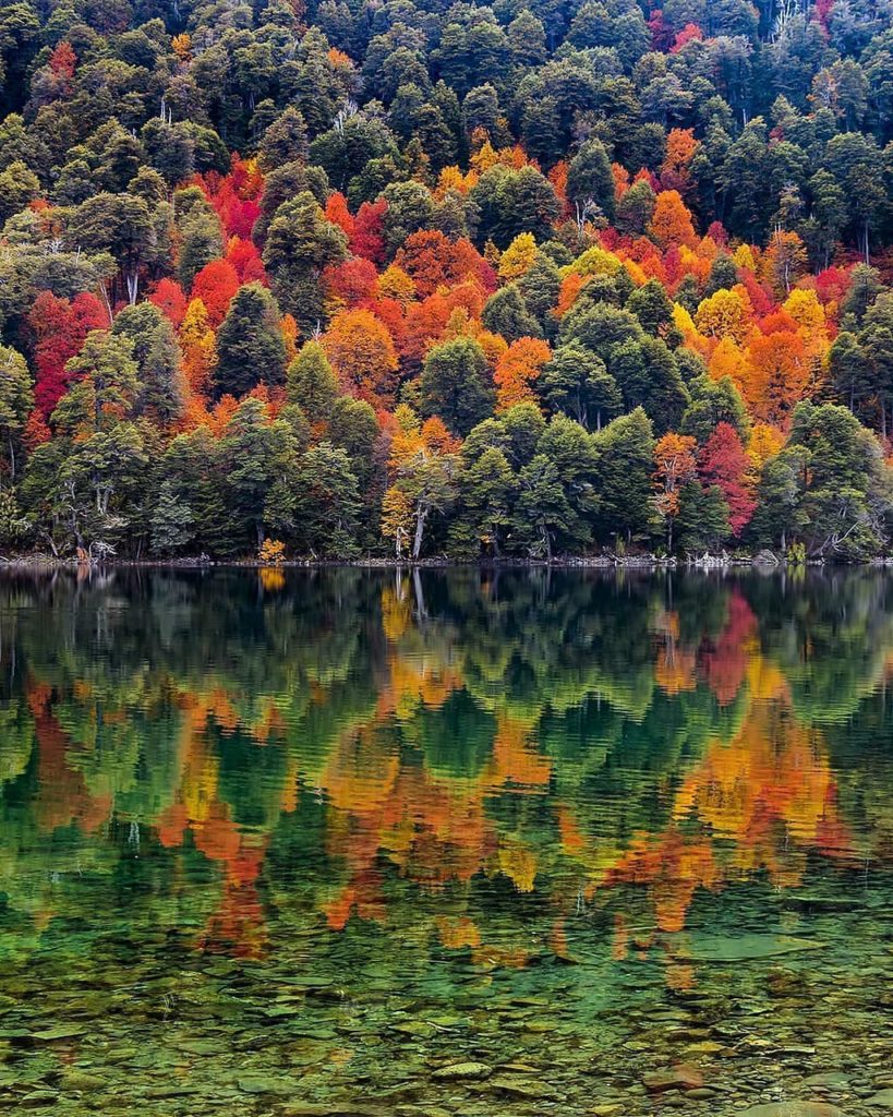 In Patagonia there is a lake district area where you can take an amazing road trip and visit its seven most famous and beautiful lakes. The upcoming photo is Lago Hermoso in Neuquen. It is absolutely stunning in the fall: