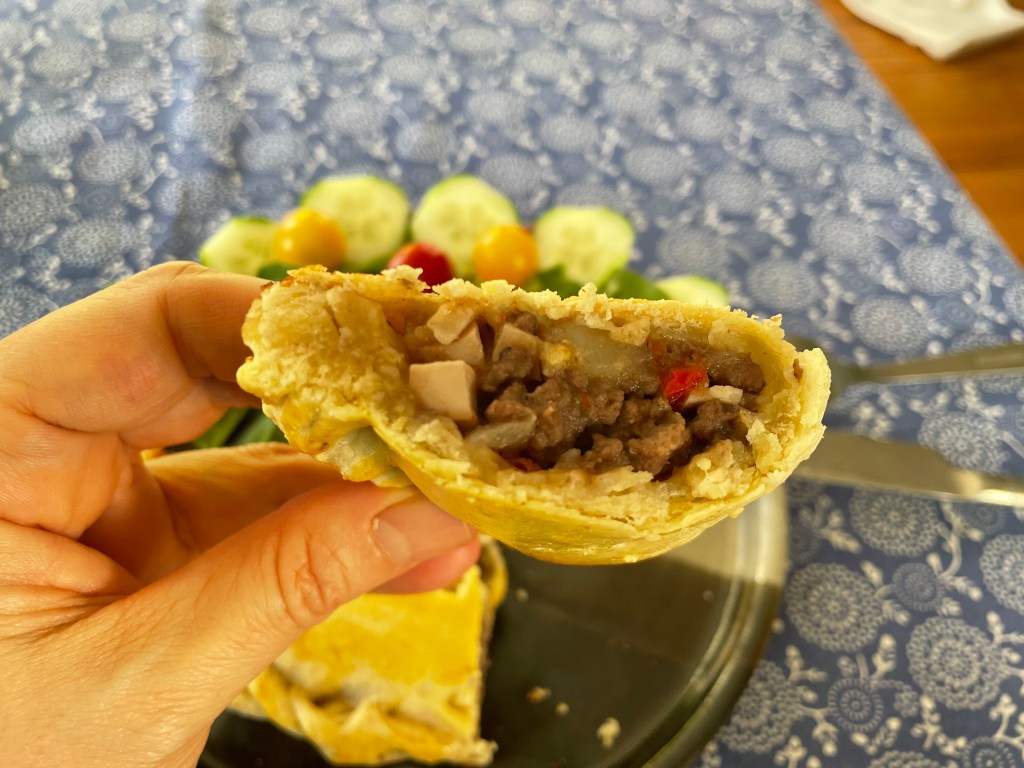 I learned from Ailin that the classic Argentine Empanada is the beef one. However they also make them with chicken, cheese, cheese and spinach and ham. Here is the recipe: