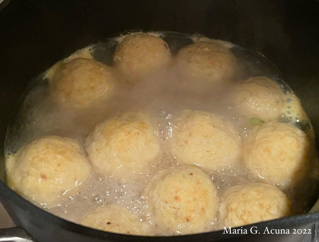 For my soup, I bought a kit (Yes! when I visited “The Butcherie”). It brought the matzah flour (which is basically matzah bread grounded) and a chicken soup base. I also bought a chicken broth (so I did not use the soup base.) It was so easy to make!
