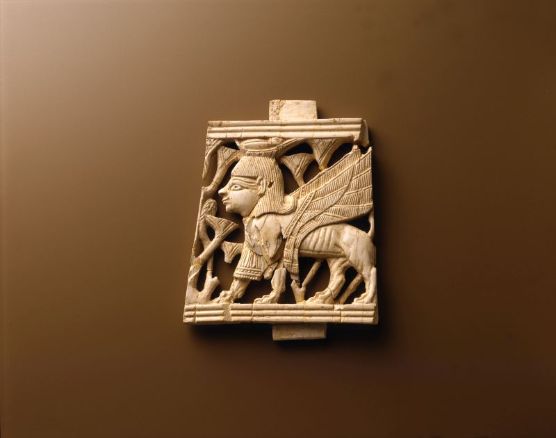 The (northern) Kingdom of Israel, was stronger and more prosperous, and had developed extensive commercial ties with the countries surrounding it. Attesting to those ties is a small carved ivory inlay in the next photo, showing a striding sphinx, found in the kingdom’s capital, Samaria, which was used as furniture decoration in the palace: