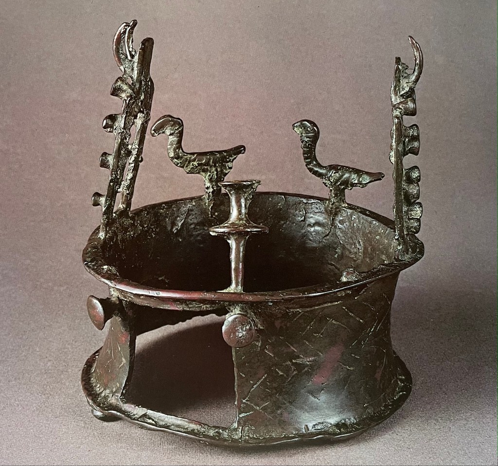 This is the most ornate of all the crowns found in this treasure. It is made of arsenical copper cast in a single casting including all projecting elements. (2)