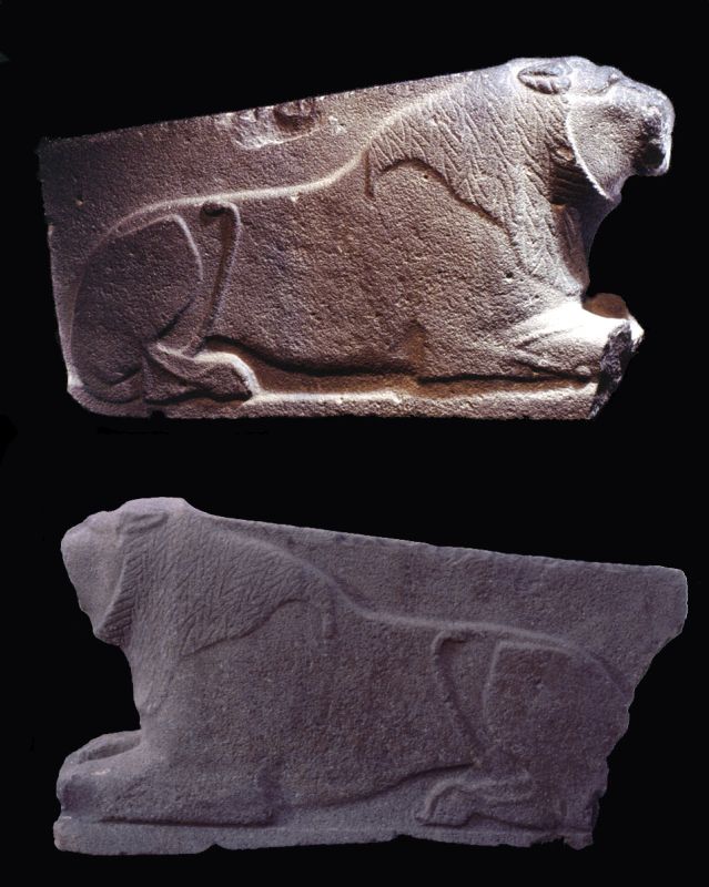 “During the first half of the second millennium BCE, a rich urban culture reappeared in Canaan, alongside the pastoral society. This period is seen as the backdrop of the stories of the patriarchs in the Bible, and it is then that the major cities mentioned in the Bible, such as Hazor, Ashkelon, and Megiddo, gained importance. Monumental basalt sculptures from Hazor, which adorned the palaces and temples, attest to the building revolution which took place at this time.” (1). These lion sculptures come fro this time: