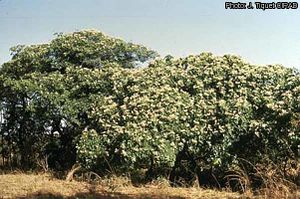 Trees, including Annona senegalensis, Burkea africana, Combretum collinum, Hymenocardia acida, Parinari curatellifolia, Stereospermum kunthianum, and species of Vitex and Strychnos, form open-canopied woodlands or are scattered in grassy savannas. Frequent human-caused fires have allowed grasslands to spread into areas formerly covered with forest or woodland.