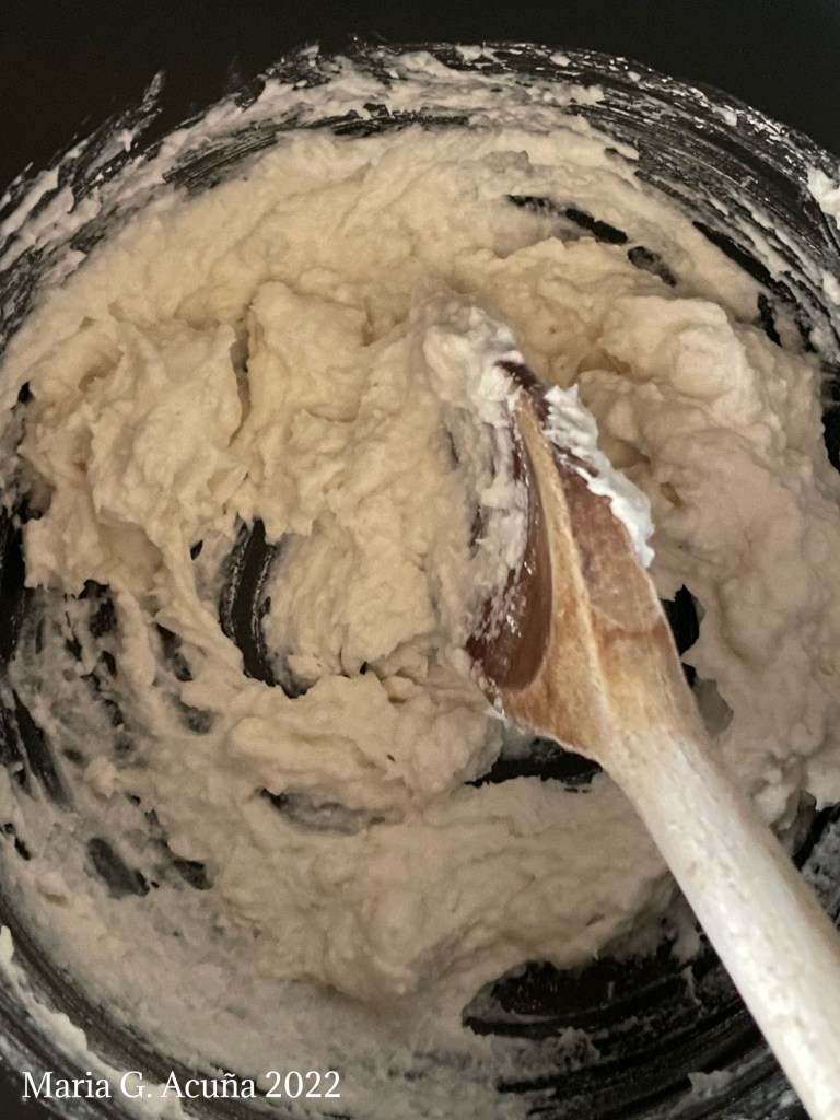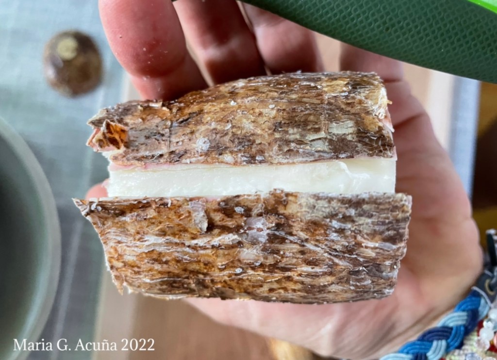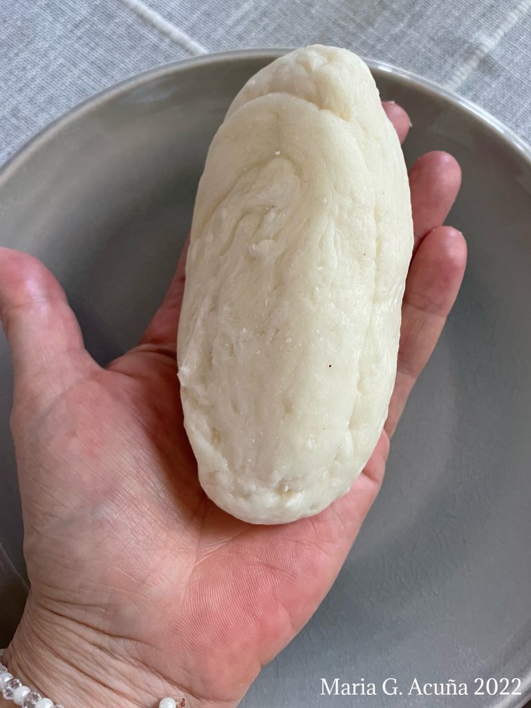 How was it? Its texture was like a cornmeal bread as in tamales… kinda!… but it tasted different. Cassava has its own particular taste. I broke pieces with my hands and dipped it in the tomato sauce of my meatballs… that mix was so, do good! So I can see how dipping this in soup is the way to go. Sadly, it is summer time where I am in Boston, US. so soup is not really what my warm body craves!
