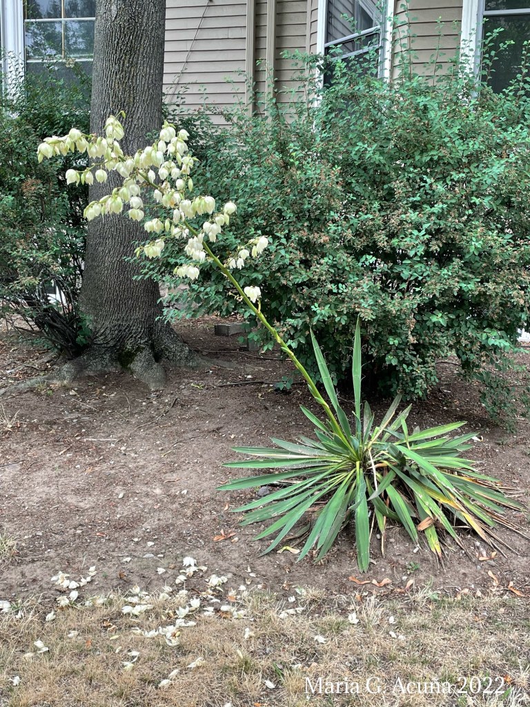 Yucca is a shrub that looks a lot like aloe vera at the base (spiky) and it has a huge stem in the middle with tons of white bell like flowers. It’s cientific name is ‘Yucca filamentosa‘ also known as ‘Adam’s needle and thread’. You are probably not going to believe this but yesterday I saw this plant in my neighborhood! So my jaw dropped to the floor when I saw its photo under yucca! I guess this post was totally meant to be! ^ ^