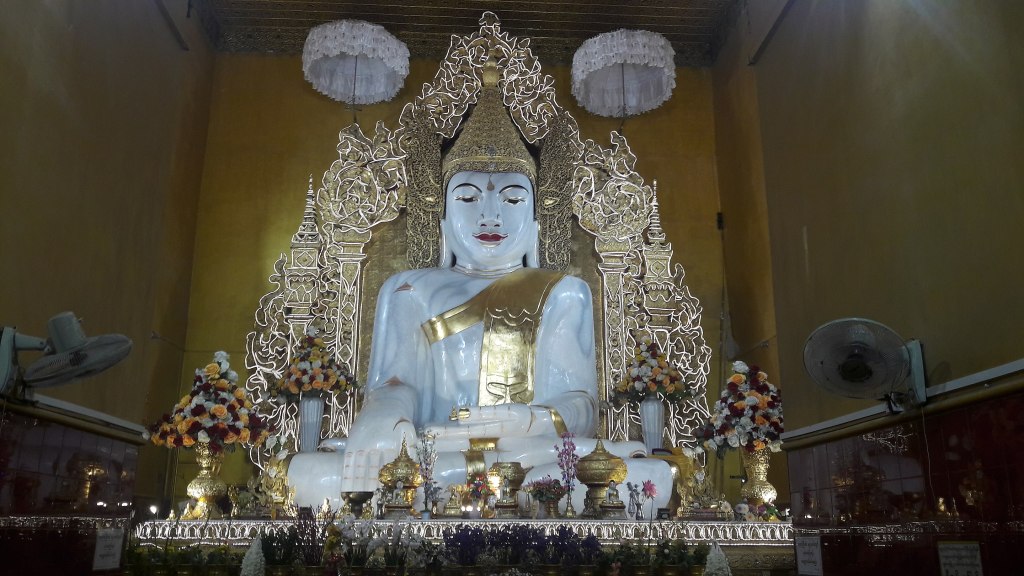 One of the most famous sculptures in Myanmar ever created is a Buddha called Maha Thetkya Mayazein (မဟာသကျမာရဇိန်). The sculpture was made out of a single block of marble. It is 25 feet (7.6 m)!!! It weighs around 560 tons. Imagine that it took about 10,000 people to transport it to the temple. It was made during the reign of King Mindon (r. 1853 – 78) and is located at the Kyauktawgyi Paya Temple in Mandalay.