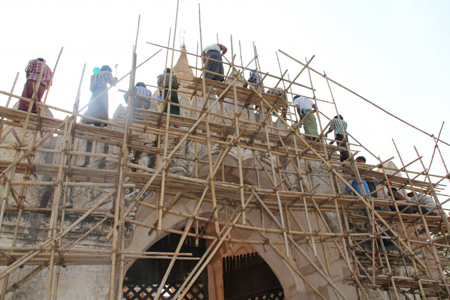 Pronounced as “Payan”. it is the art of masonry, constructing buildings with brick, stone, concrete and cement. The masons build brick houses, pagodas, bridges, etc.