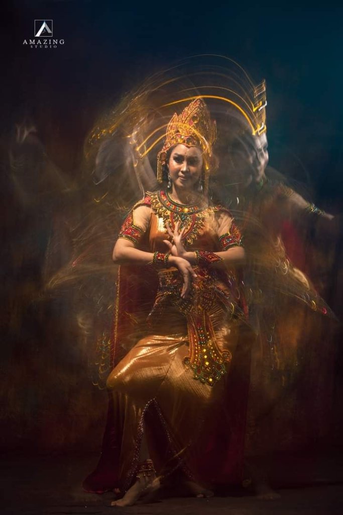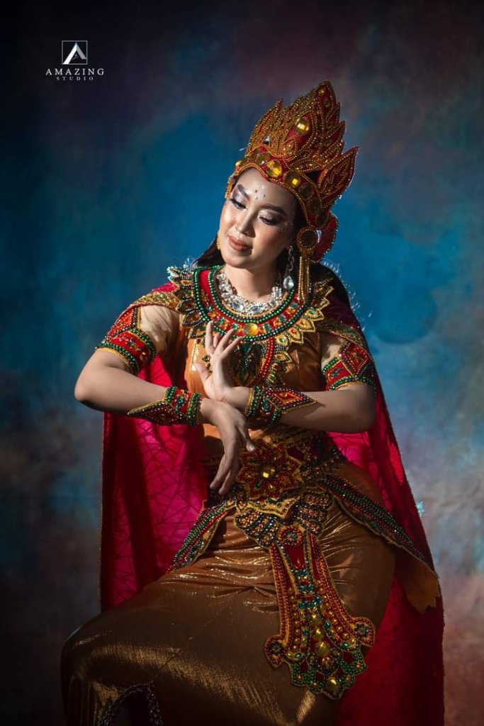 ‘Ta Bin Daing’ means ‘lone’ or ‘the only person’ in English. It is a traditional solo dance that portrays the daily chores of a royal princess. Even the mundane and monotonous daily activities become interesting as the princess carries out her duties with poise and dignity.