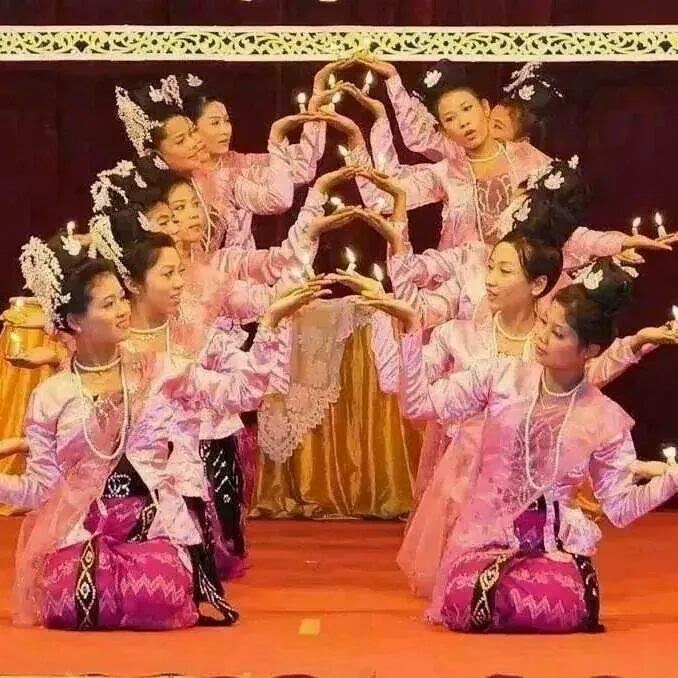 In the oil lamp dance (ဆီမီးကွက်အက), the traditional oil lamp offered to the Buddha is a lighted wick of cotton soaked in an oil-filled earthenware saucer is the centerpiece of the dance. A lighted candle now usually substitutes in its place. The Rakhine people of western Burma incorporate the oil lamp dance in many of their traditional dances, mostly devotional, to the Buddha.