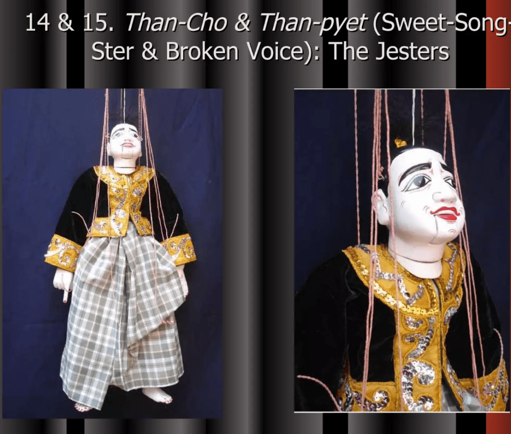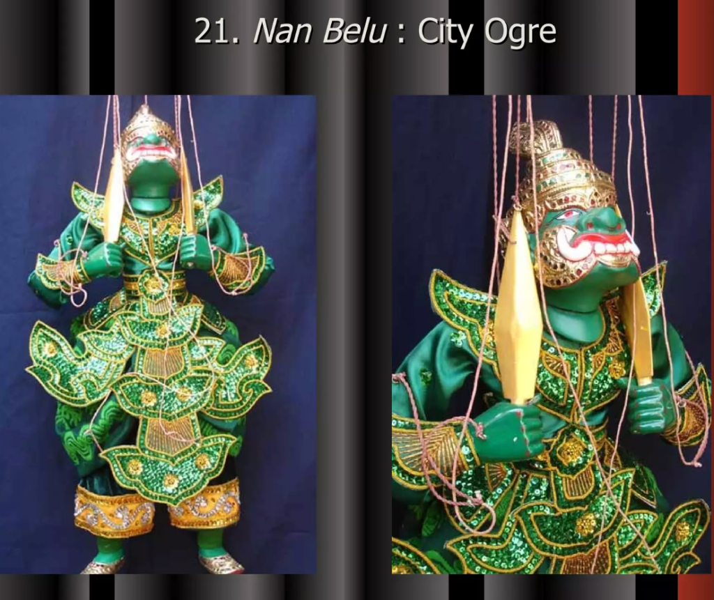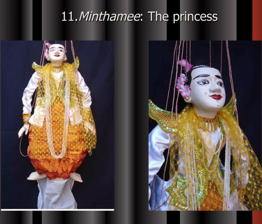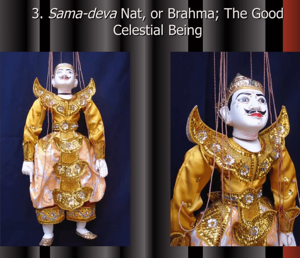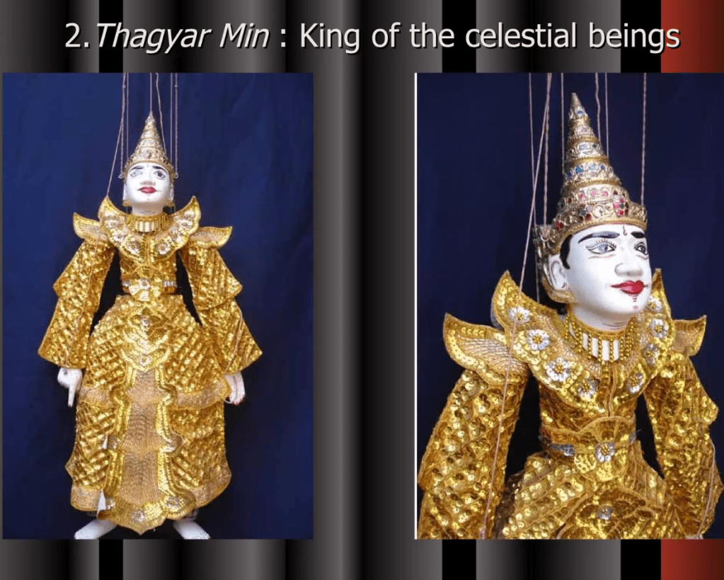 Even though Myanmar’s Traditional Marionette Puppetry has been influenced by India and Thailand greatly it has many characteristics that make it their own. One are the sort of cannon of characters that perform and the complexity in the creation of these marionettes.