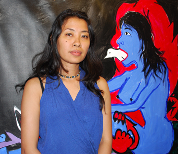 Trying to escape from the realization that many innocent people are imprisoned for their beliefs and democratic actions along with the current living environment in Burma has been part of her inner conflict, and she attests that art is a constructive means of highlighting that socio-political realm.