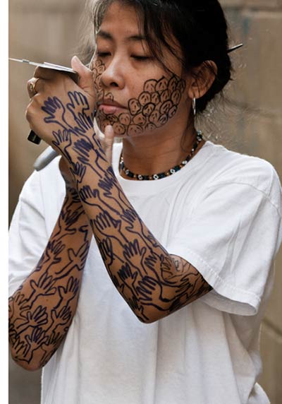 Chaw has at times been labeled as being a political activist and criticized for mingling art and politics. Her creativity is deeply enmeshed in her life experiences and she stands true to her convictions. Forever searching for ways to take personal control in her artistic expressions have been challenging in the restrictive Burma’s socio-political climate. (3) She had to live under the military regime and when she tried to express her feelings in performance they arrested for 5 days.