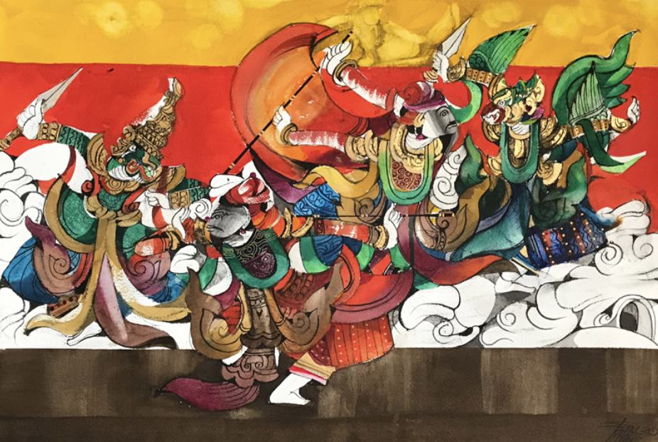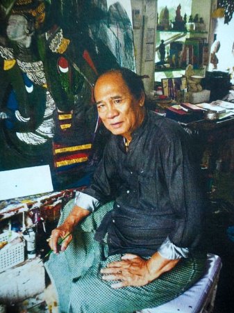 As to what artist inspired the angel, it was none of the ones I researched about before ^ ^. It was someone I discovered after I had written that post. His artist name is Sein Myint or U Sein Myint (real name: Shwe Chi Doe) He was born in in the Sagaing Hills in Upper Myanmar near the city of Mandalay in 1945. He is an authority and very well rounded artist who has dedicated his life to learning about Myanmar culture and art. He is known for his tapestry work and his watercolors the most.