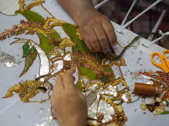 He has had many hands on experience traveling to many rural villages in search of folk culture and customs giving him first-hand experience of how looms are set up, how peanuts are ground for oil, and much more. Around 1985, he became interested in the art and craft of traditional Myanmar tapestry and decided to pursue it as a medium of expression. (2)