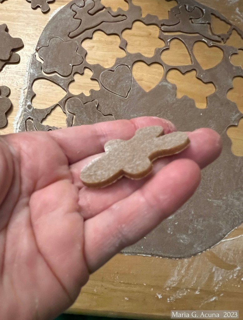 G. Use cookie cutter shapes to cut the dough, re-roll the remaining flour and use until the last bit!