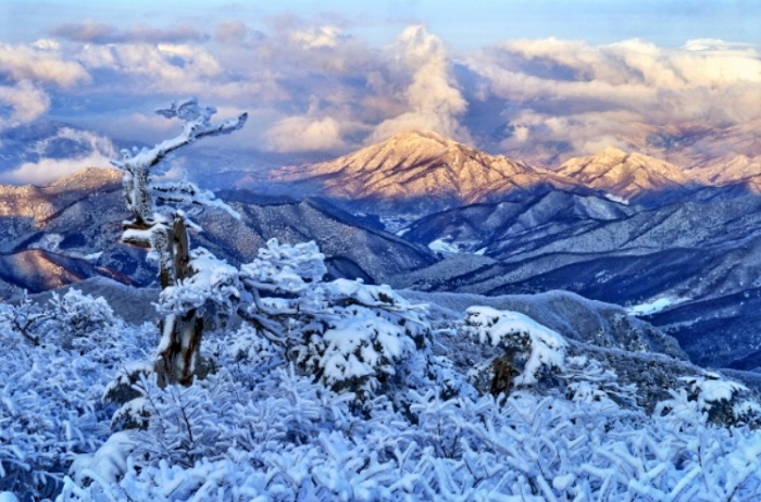Among the Taebaek Mountains’ 2,085 peaks, Daecheongbong (1,708 meters) stands as the tallest and most prominent. Located on Mount Seoraksan within Seoraksan National Park, Daecheongbong is also part of the UNESCO-designated Mount Sorak Biosphere Reserve. Other notable peaks in the range include Mount Seoraksan (1,708 meters), Mount Kumgangsan (1,638 meters), Mount Taebaeksan (1,566.7 meters), and Mount Odaesan (1,563 meters).