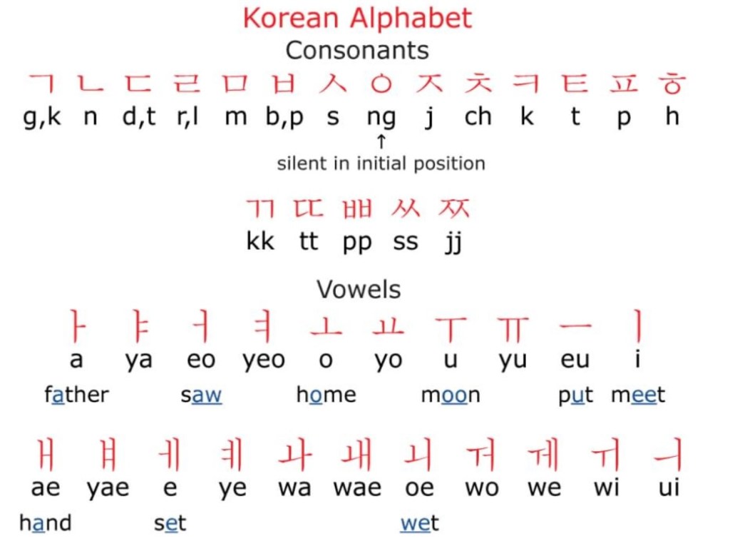 So remember the over 5,000 characters one has to learn for Chinese and 2,000 for Japanese… now let’s take a look at Korean: