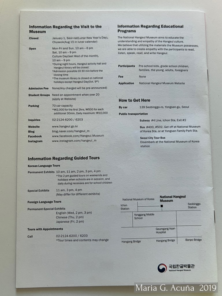 I hope you enjoyed this visit to the museum, and learning about the beautiful history and design of the Korean language, Hangul.