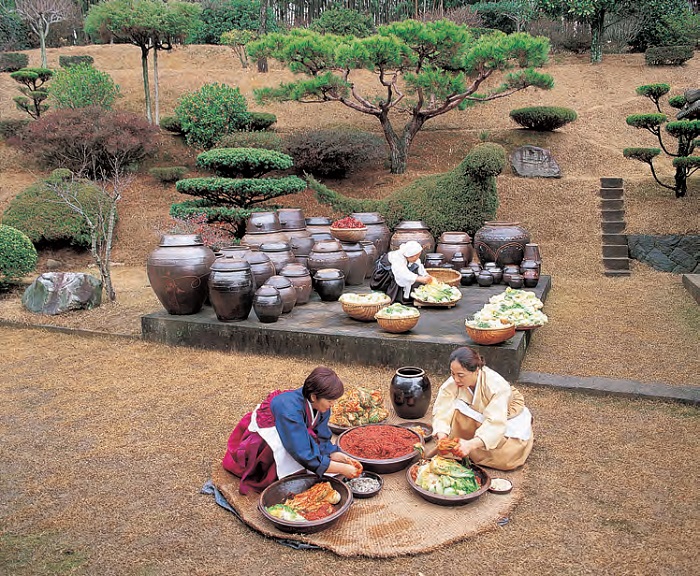 Here is what traditionally it would have been like… … but see the jars in the back? they are called Onggi. They would have filled these Onggi with Kimchi and pickeled vegetables and buried them in the ground to preserve them… like a natural refrigerator!