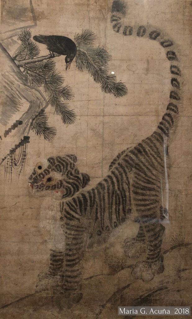 Protection from Evil Spirits: Tigers were believed to ward off evil spirits and bring good fortune. Hojakdo paintings were often hung on doors or walls, especially during New Year’s, to protect the household from bad luck.