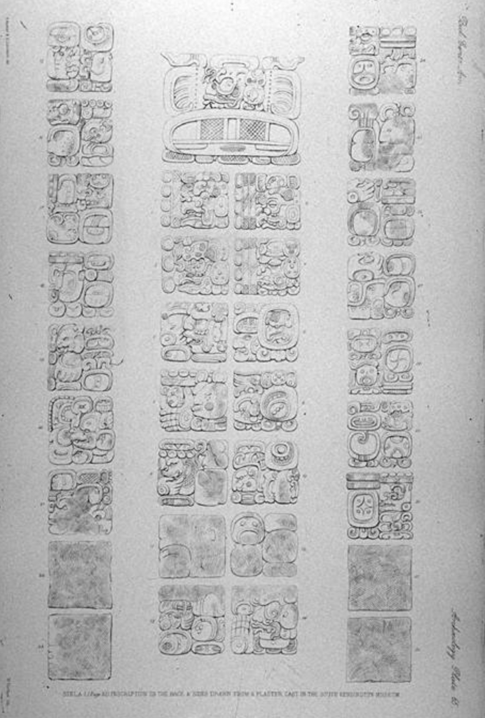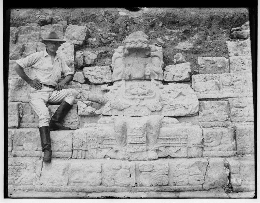Here he is with a partially buried Stela. Copán 1880-1902 Plate 100: