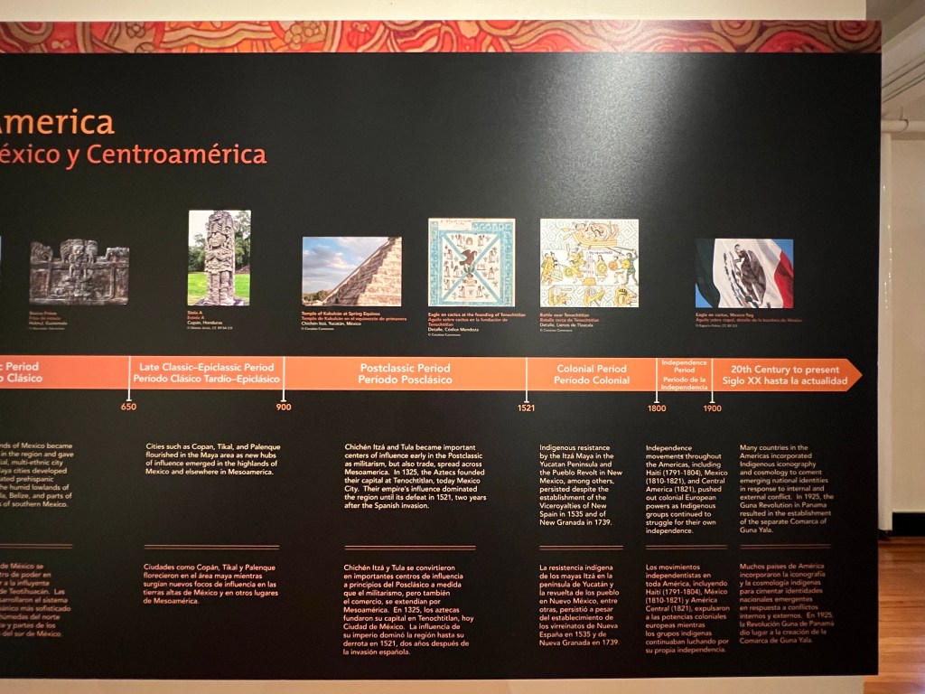 When you walk into the museum you see many stairs, the Latin America exhibits are on the 3rd floor. This is the entrance: