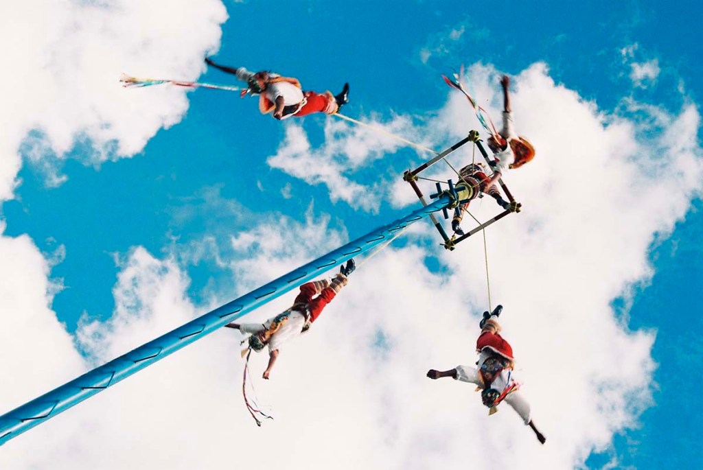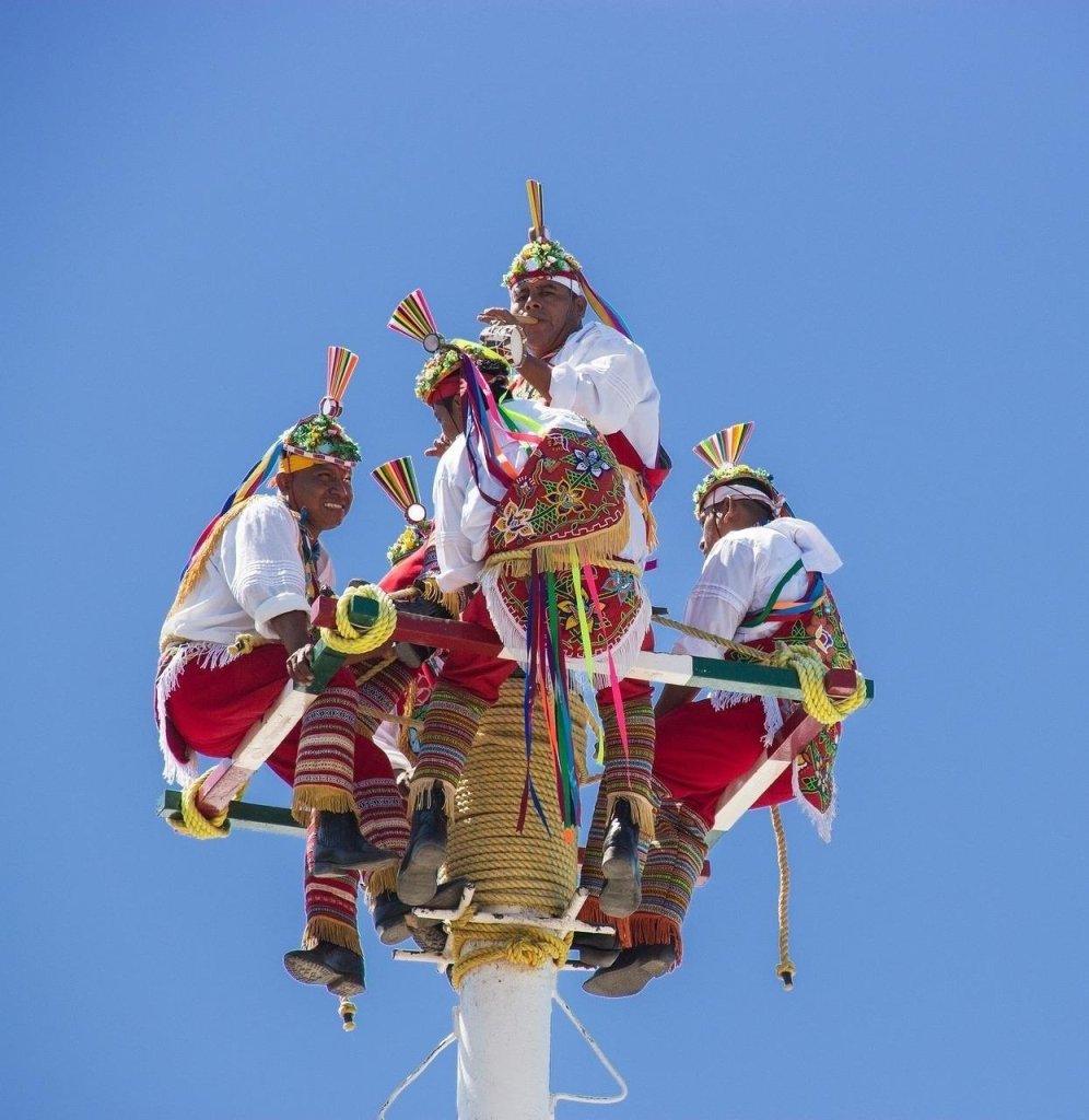 The Flyers: The other four dancers, dressed in colorful, bird-like costumes, represent the four directions and the four elements (earth, air, fire, and water). They attach themselves to ropes and launch themselves backward from a small platform at the top of the pole.