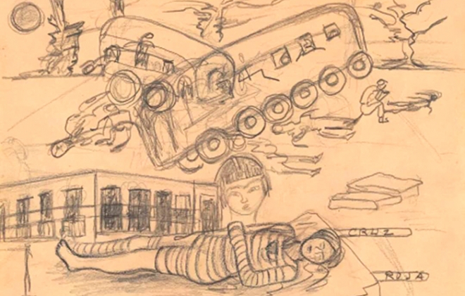 Almost 100 years ago, on September 17 of 1925, Frida suffered her terrible accident. This is the only art she ever created about it, a sketch: