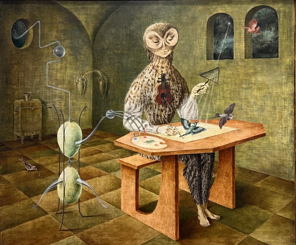 Alchemy and the Occult: Driven by a deep interest in esoteric philosophies, Varo’s canvases frequently show her characters performing magical rituals or creating life through strange, transformative processes.