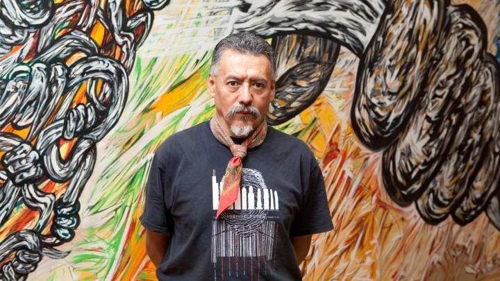 Symbolism: He often incorporates the Monarch butterfly as a powerful symbol of human migration, visualizing a cultural corridor that stretches between his homes in Mexico and the United States.