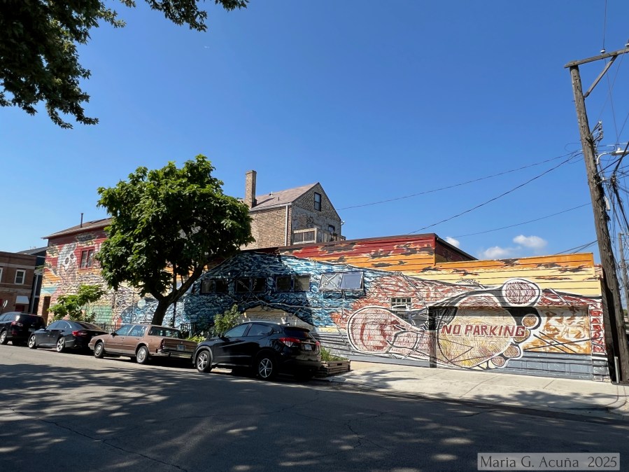 Here are some of the rest of the murals I saw in Pilsen. I think I visited at a point where one could still see the splendor of some of the murals (August 2025), but sadly many are being vandalized with words and other images. Notice the Frida Kahlo mural for example with those letters that have nothing to do with the mural and the decay in the subway ones.