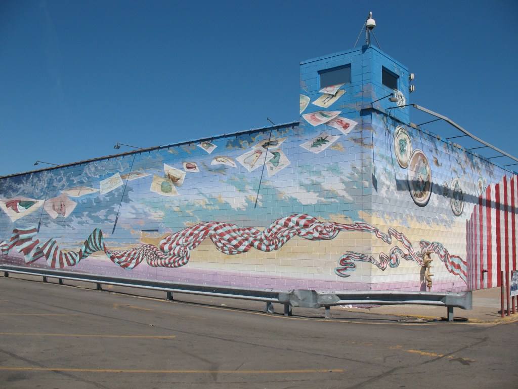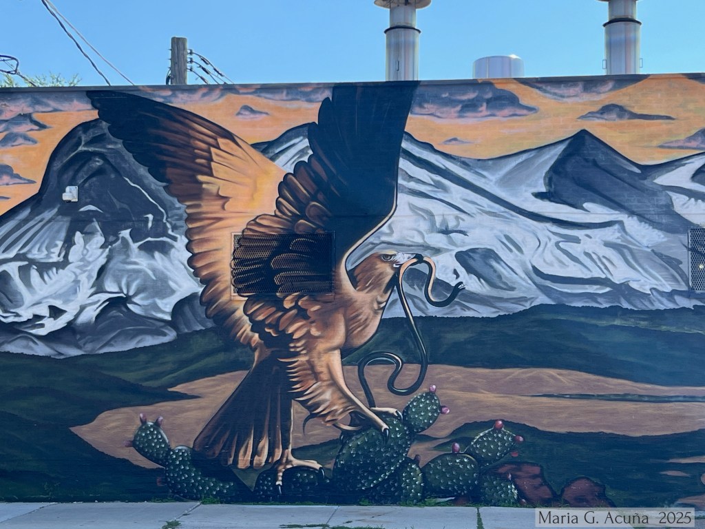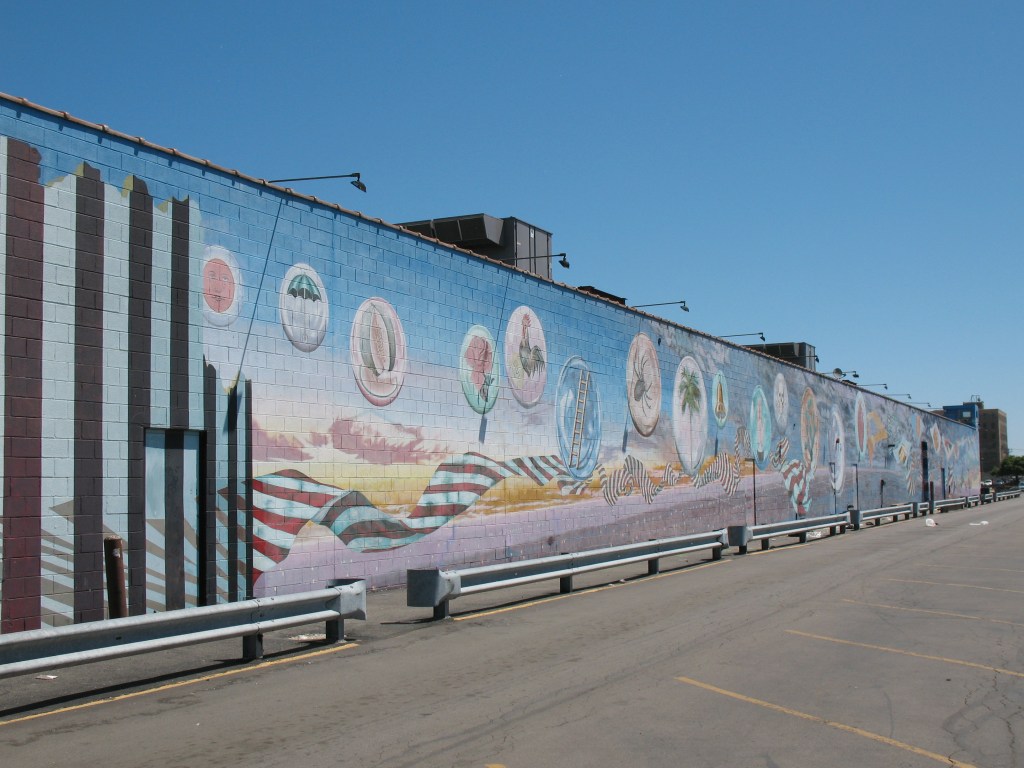 This mural represents the dreams of a Paletero (Popsicle vendor) symbolizing the working-class immigrant who often starts with humble, small-scale entrepreneurship as the first step towards a better life and economic opportunity achieved through hard work.