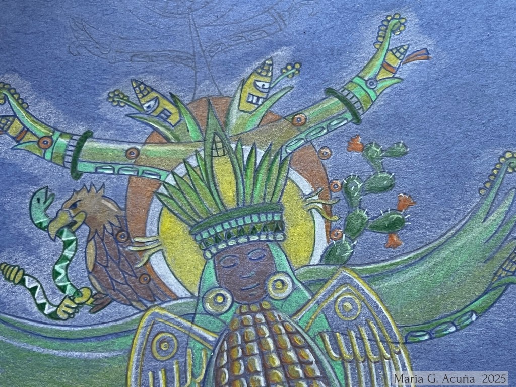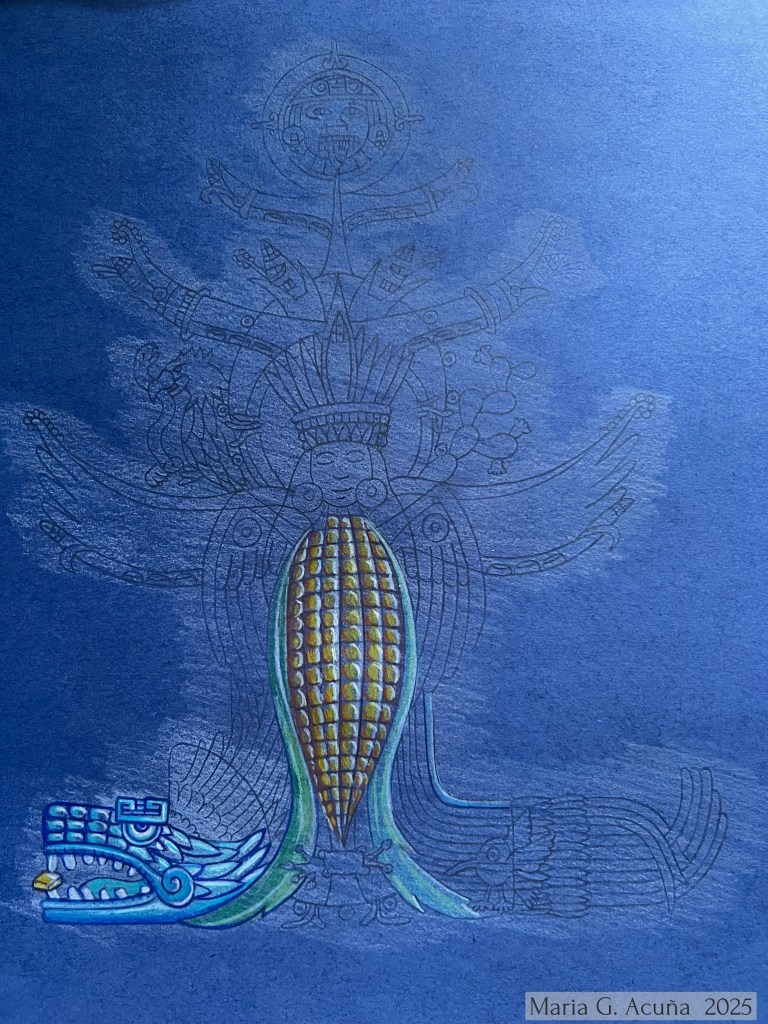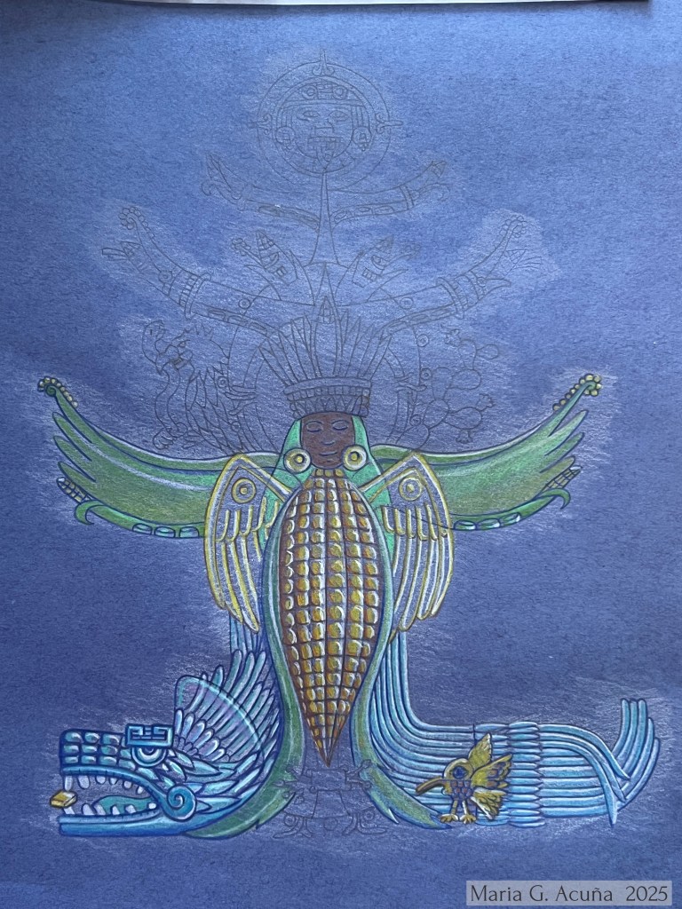 This year, I also learned how important corn was to the Mesoamerican cultures, and the story of how Quetzalcoatl brought them the seed of corn. And I was brought up greatly eating corn in arepas, bollitos and cachapas… huh? ^ ^. Don’t worry I hope to share these with you someday soon! Corn has been a theme in my work life lately as I even used it as a topic for my students to do artwork related to one of the units they were learning.